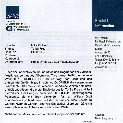 Promotional sheet in german languaje